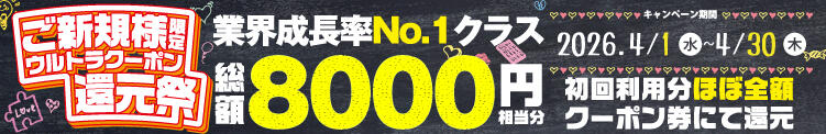 新規限定8000円分クーポンプレゼント中(期間4/30(木)迄)(04/02更新)
