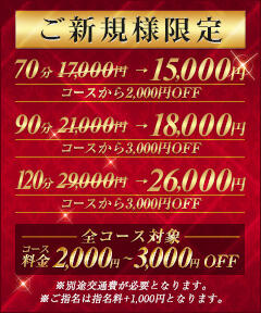 ★ご新規様割引★衝撃の70分15,000円!(08時31分更新)