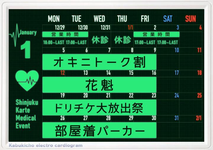 1月2日[金] 特別営業 17:00-25:00