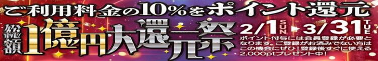 ご利用料金の10%還元!!