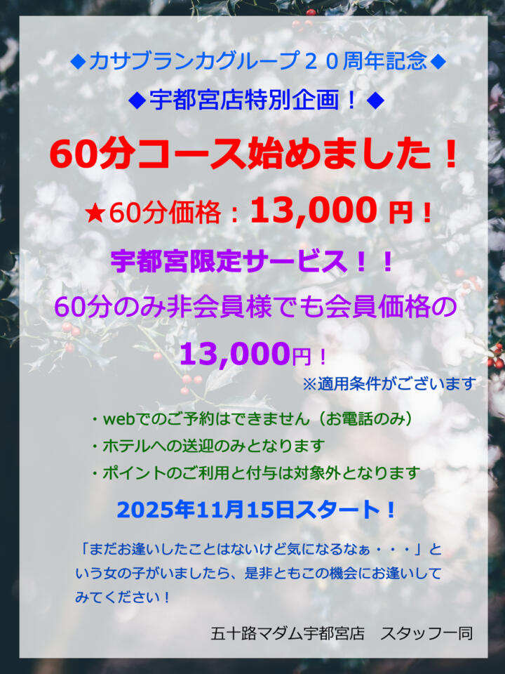 60分コース始めました!(14時06分更新)