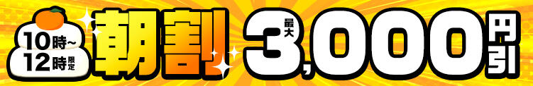 朝割!MAX3,000円割引(01/02更新)