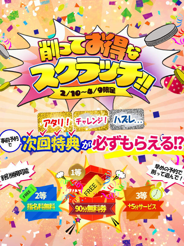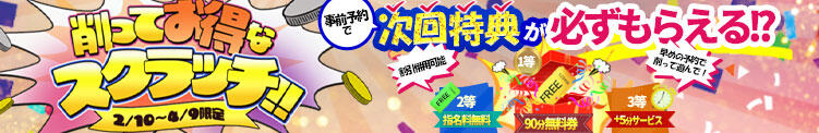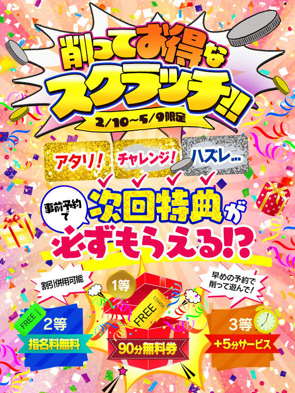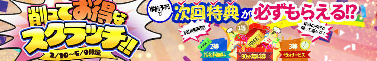 受付時にメルマガのパスワードと「スクラッチ」とお伝え下さい♪