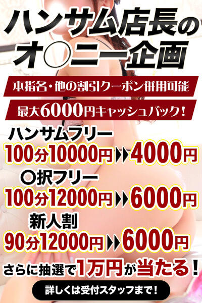 新規ご利用頂くお客様限定!入会金・初回指名料総額4000円割引!(12時00分更新)