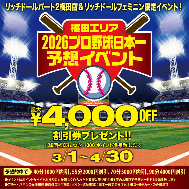 割引(ヒメ割、局割、お店の割引)|リッチドールパート2梅田店