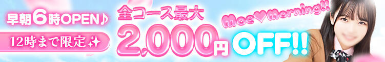 全コース最大2,000円OFF♪ 平日限定オープン6時~12時までの早朝割引で激萌えッ!(03/03更新)