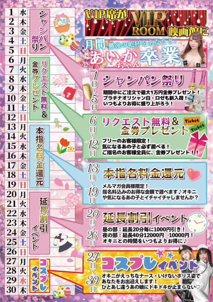 4月は月末に『コスプレイベント』も開催予定!