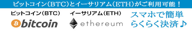 【暗号資産決済(ビットコイン決済・イーサリアム決済)がご利用可能】(01/29更新)