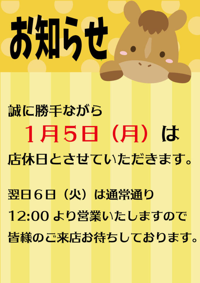 翌日6日(火)は通常通り12:00より営業いたしますので皆様のご来店お待ちしております❤️