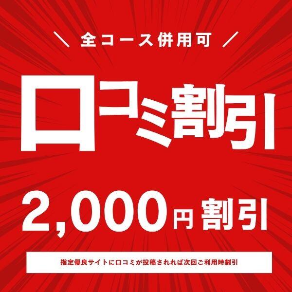 当店の口コミ情報が掲載されたら次回ご利用時2000円割引!!