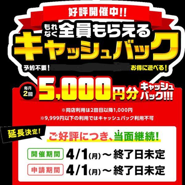 例 新規割90分12000円と5000円キャッシュバック併用で90分7000円!!