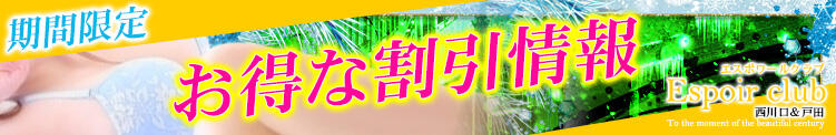 お得な割引情報(12/26更新)|Espoir club(エスポワールクラブ)西川口&戸田(西川口発・近郊/デリヘル)