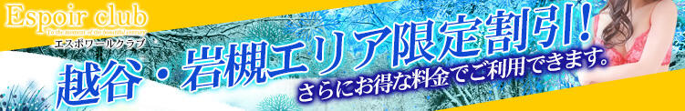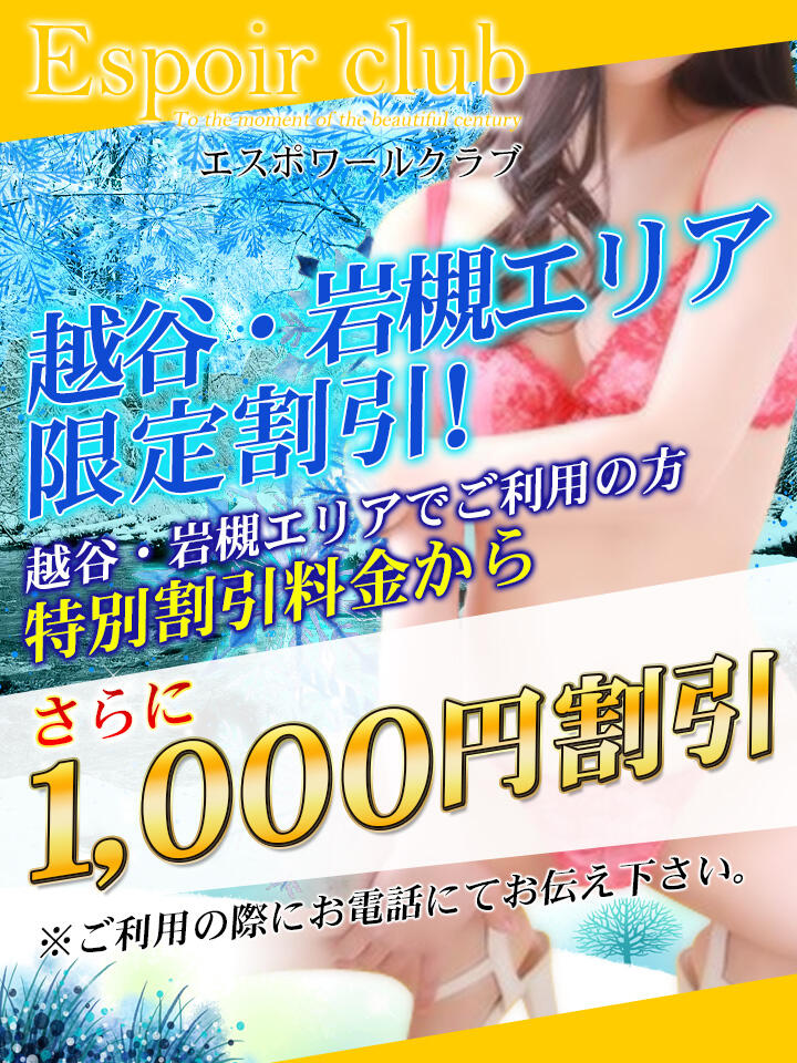 【越谷・岩槻】エリア限定割!更に1,000円引き(12/26更新)|Espoir club(エスポワールクラブ)(越谷発・近郊/デリヘル)
