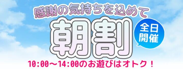 朝一番のフレッシュな気持ちで、最高の女の子との時間を、いつもよりお得にお楽しみいただけます。
