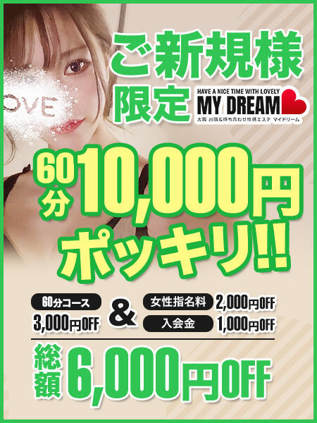 【ご新規様限定】60分10,000円ポッキリ!!超絶神射精エステ「マイドリーム」(12/23更新)