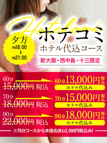 ※西中島/十三にてご利用の際は+2,000円でホテル代込み!(150分以上から+3,000円)