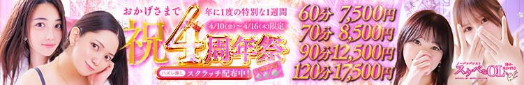 祝4周年祭✨1週間限定60分7500円✨(01時00分更新)