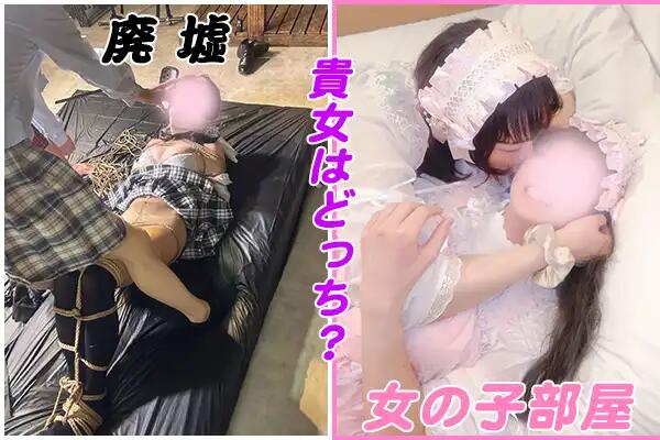 ⭕️女装変身して、色々な衣装に着替えての変身体験。記念のお写真を撮ってもらい、拘束された後に綿ロープでグルグルに縛られて、最後にお姉さんとレズ体験。