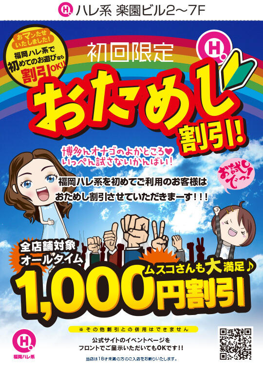 当店を初めてご利用のお客様は受付時に画面のご提示でお試し割引(オールタイム1000円割引)させていただきまーす!!