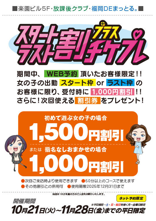 WEB予約限定♪女の子の出勤スタート枠orラスト枠で受付時に