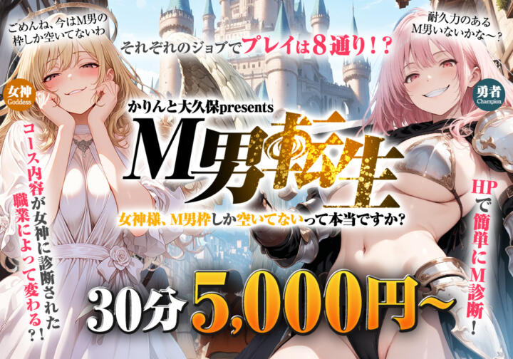 ※本コースご予約の際は、『M男転生コース』とお伝えいただき、転生結果をお知らせください。