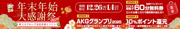 【年末年始】秋コスグループ大感謝祭開催!(12/25更新)