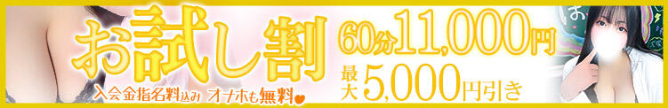 お試し割!!入会金指名料コミ オナホも無料です! 60分11000円 最大5000円引き!(03/23更新)