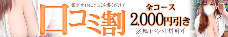 口コミ割~【併用可】口コミ書いて全コース2,000円引!!(03/23更新)