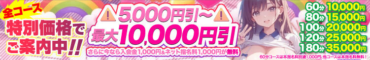 80分コース以上 本指名料無料 ※60分コースは本指名料1,000円となります。