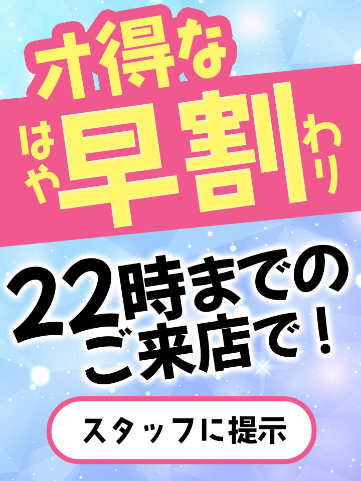 22時までご来店で指名・2回目ご来店のフリーのお客様!