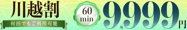 ◼︎【川越割】60分9,999円!最安値でセレブをお届け!(01/02更新)