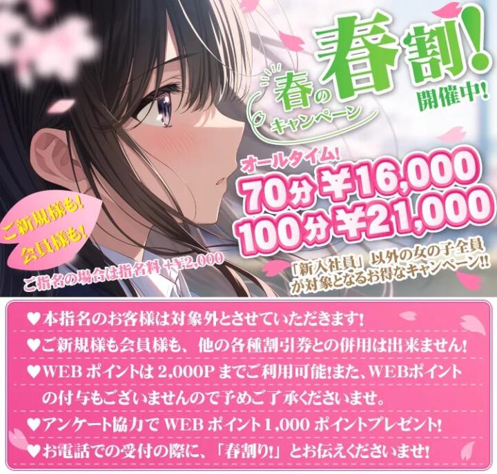 ■お電話やLINE,ヘブンチャットでの受付の際に「春割り」とお伝え下さいませ。