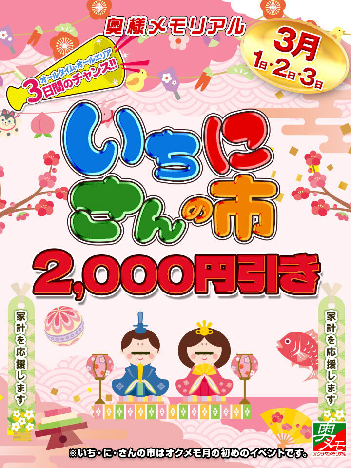 ★【毎月1日・2日・3日開催】月の初めは奥メモいち・に・さんの市開催!★(02/24更新)