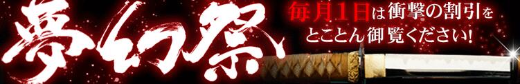 【夢幻祭】はお客様に日頃からの感謝の気持ちを込めると共に月の始まりを気持ちよくスタートして頂く為に毎月【1日】に衝撃の割引をご用意致しました。