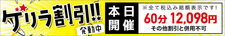 ☆本日限定☆60分12,098円(税込)の超お得な『ゲリラ割引』開催中!(2025/08/19更新)|東京メンズボディクリニック TMBC 池袋店(池袋/美少女専門エステ &デリバリーエステ)