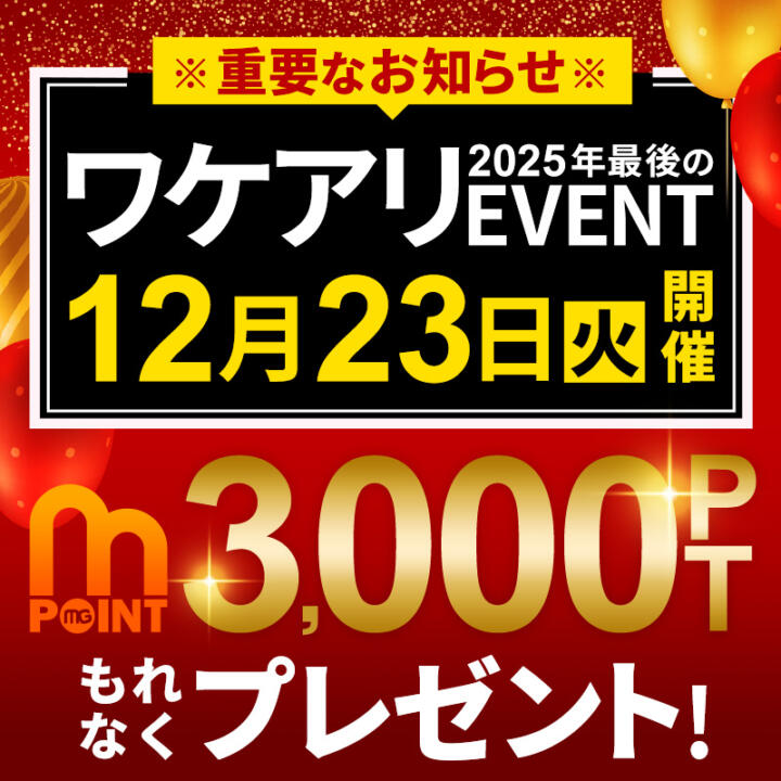 ワケアリ3,000ptプレゼント★